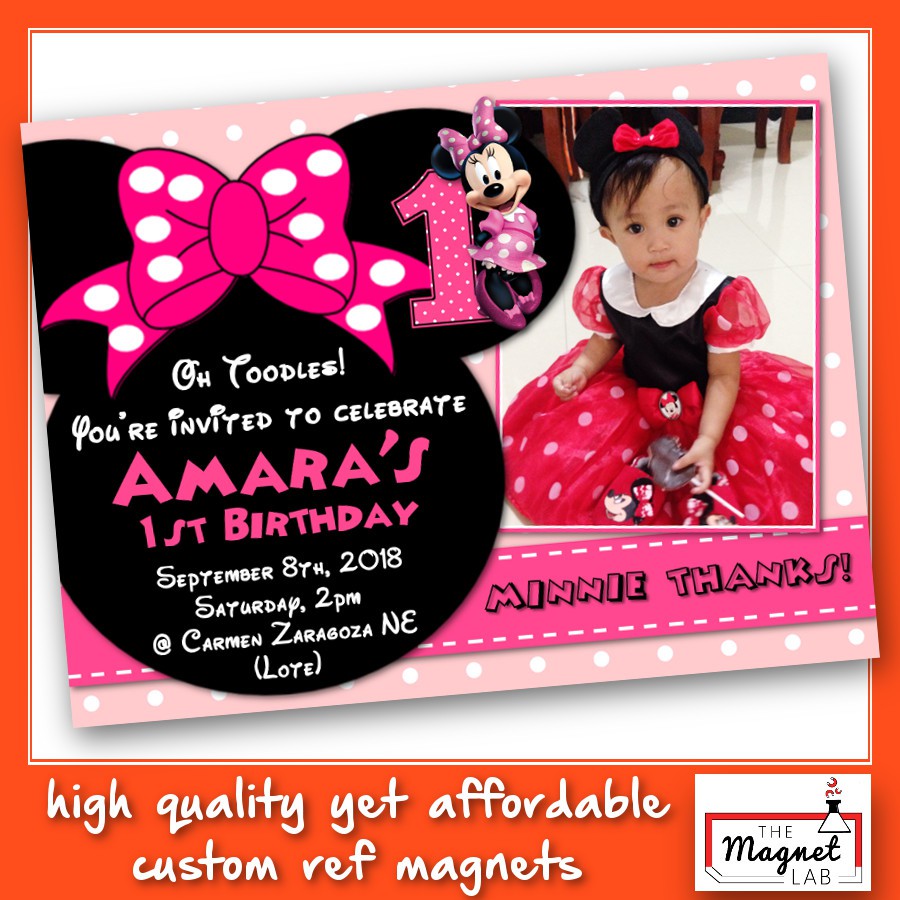 Minnie Mouse Invitation Ref Magnet For Baby Girl Birthday Christening Baptism Souvenir Or Giveaways Shopee Philippines