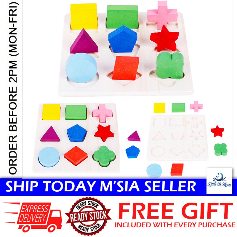 Little B House Montessori Brain Training Intellectual Wooden Puzzle Geometric Shape Toy Block Bt34 Shopee Malaysia