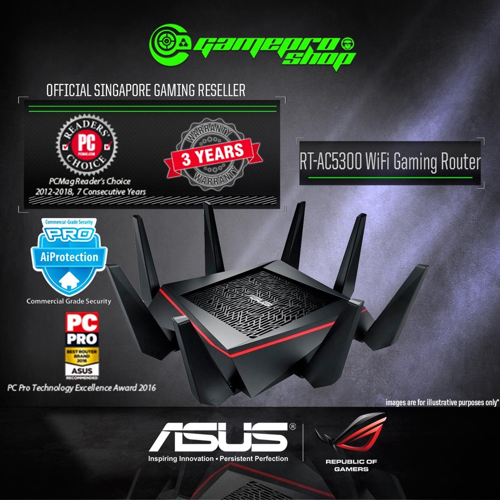 ASUS RT-AC5300 -Tri-Band 4 Port Gigabit Router,8 Antenna/4K Streaming (500 Sq M CoveraGE) (3Y) | Shopee Singapore