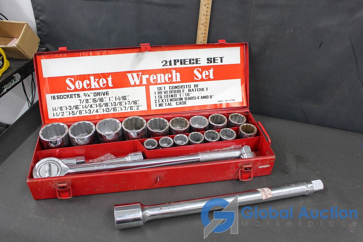 3 4 Drive Socket Set With Breaker Bar Ratchet 2 Extensions 1 Drive 18 Extension